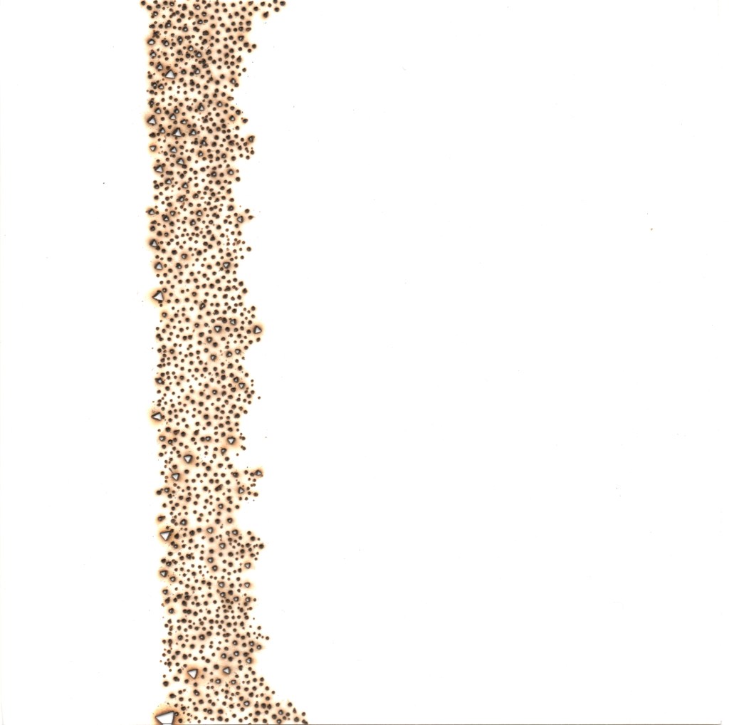 This three person exhibition Autonomous Bodies featured the work of the three new resident artists, Kathy Liao, Benjamin Rosenthal and me. It was on view from May 14 through June 15, 2018, at Studios, Inc. in Kansas City. The show explored the ways in which the three of us address issues related to the body. I’m particularly interested in the timeless relationship of the body to the landscape. My piece, Rift, was related to systems both in the body and the landscape, such as neurological and vascular systems as well as roots that burrow deeply into the soil. I also had a series of photographs, abstractions derived from pyrography, that blurred line the line between flesh and the cosmos, sand and skin, the unknown and the knowable.